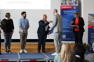Welche konkreten Projekte zum Abbau von Bildungsbarrieren und zur Förderung von Teilhabe die IKOs in ihren Schulen umsetzen oder planen, konnten sich die Gäste der Veranstaltung anschließend an den gestalteten Stellwänden erläutern lassen. Sie ließen sich inspirieren von Initiativen wie den "Diversity-Lotsen/-innen", der muttersprachlichen "Stimme am Montag", mehrsprachigen Leitfäden für Eltern oder auch zu "maßgeschneiderten" schulinternen Fortbildungen zum Umgang mit Voreingenommenheiten in der Schule.